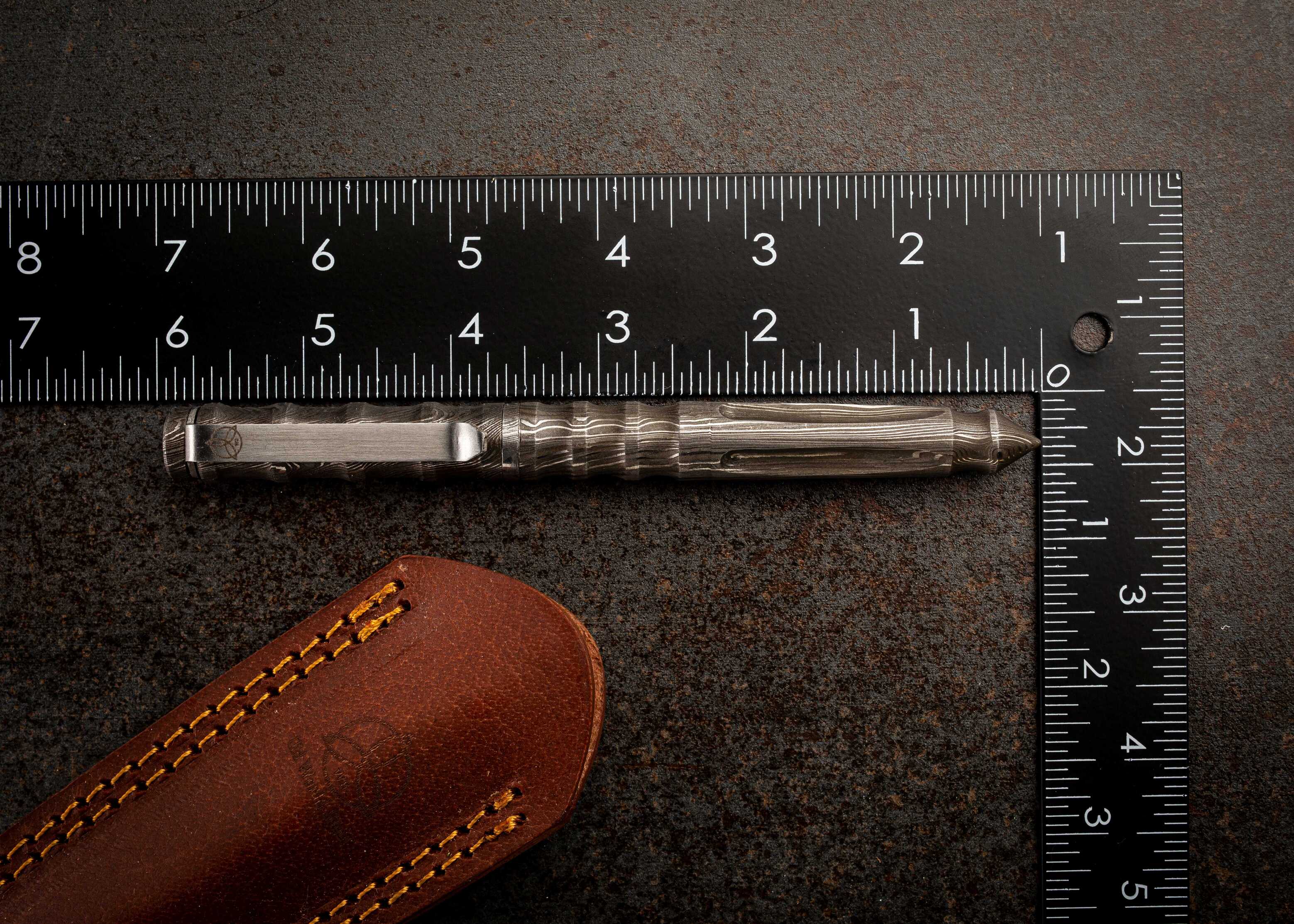 Includes a handmade leather sheath for your pen. Hand cut, hand stitched, and beveled. The vegetable tanned leather is thick and heavy duty. This sheath will last you many years and look good doing it!